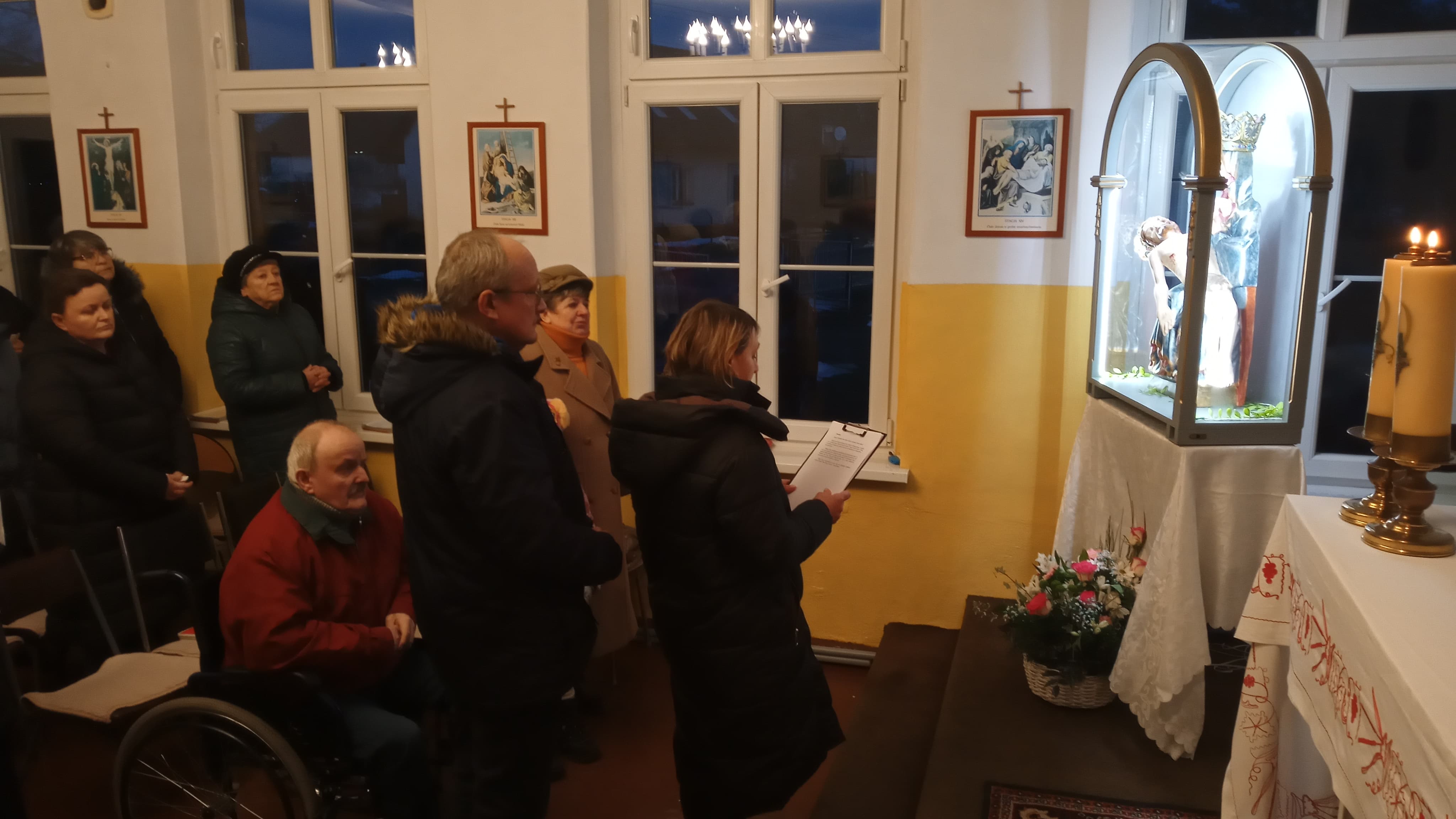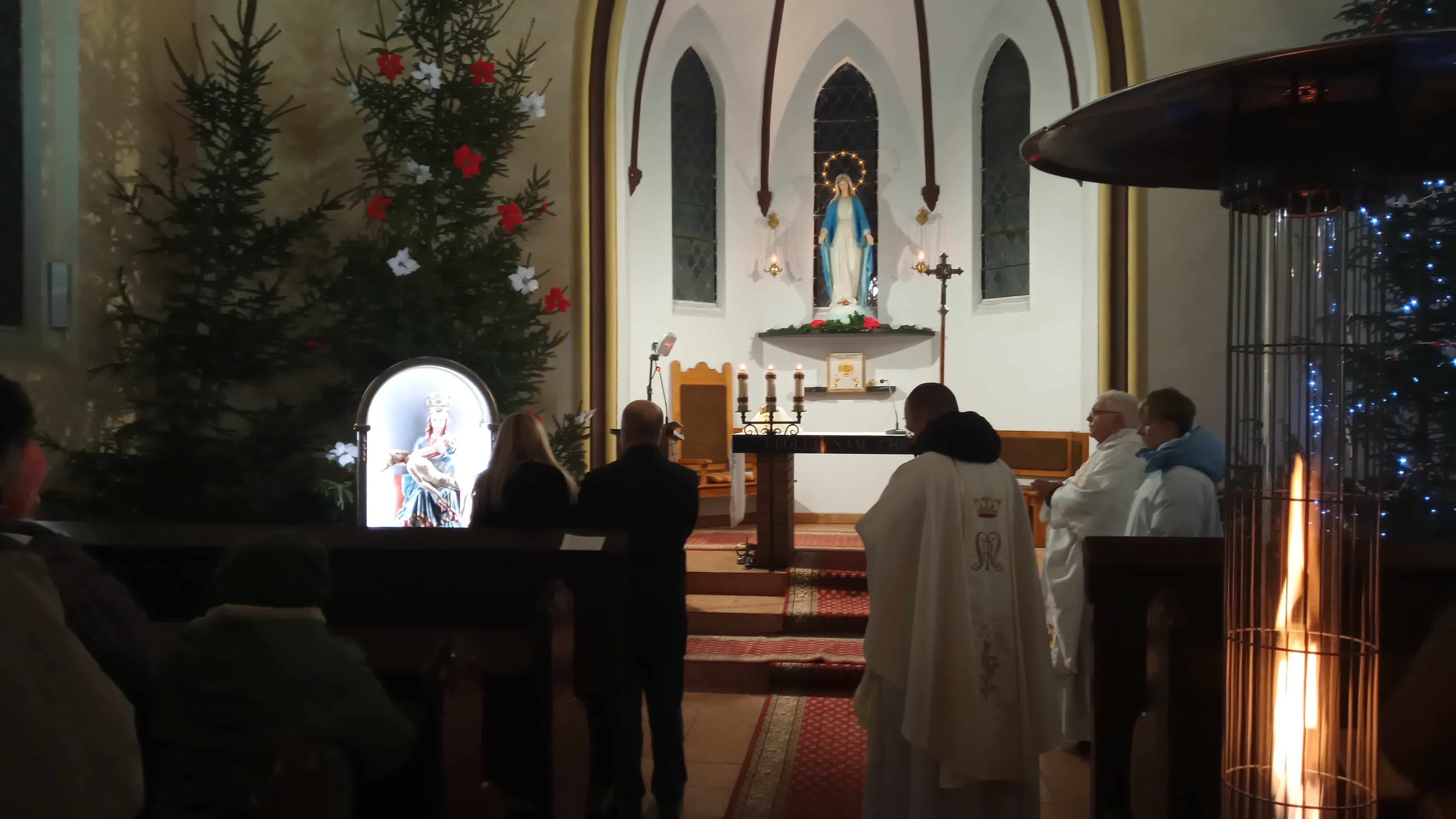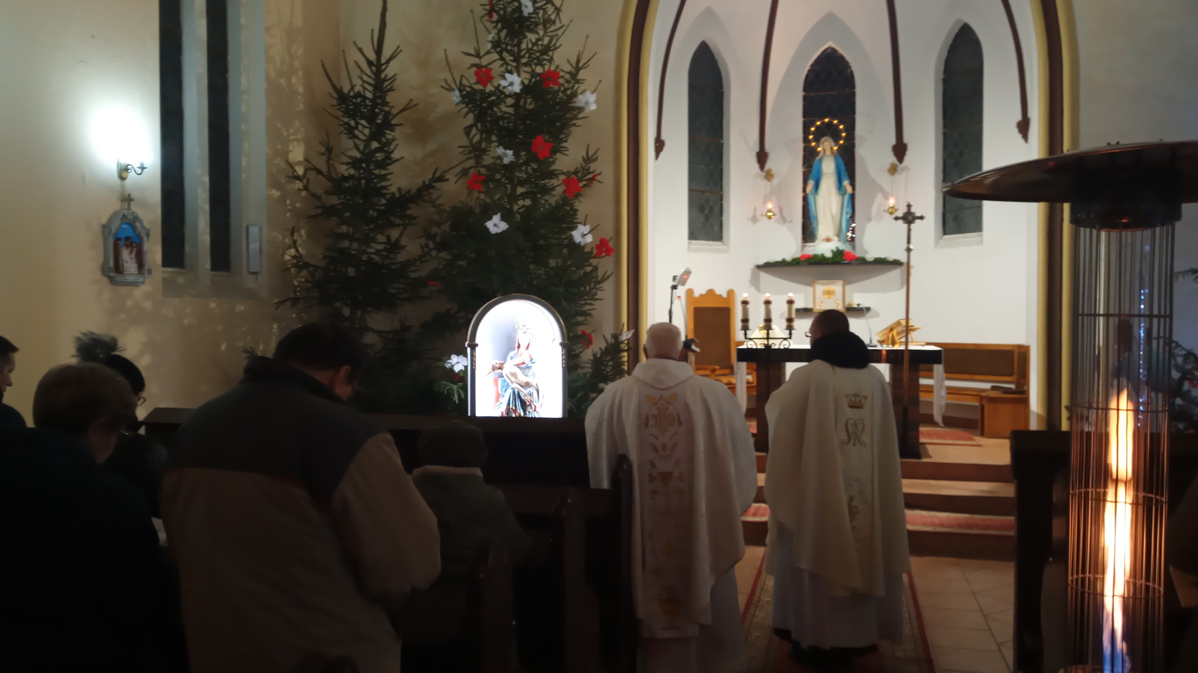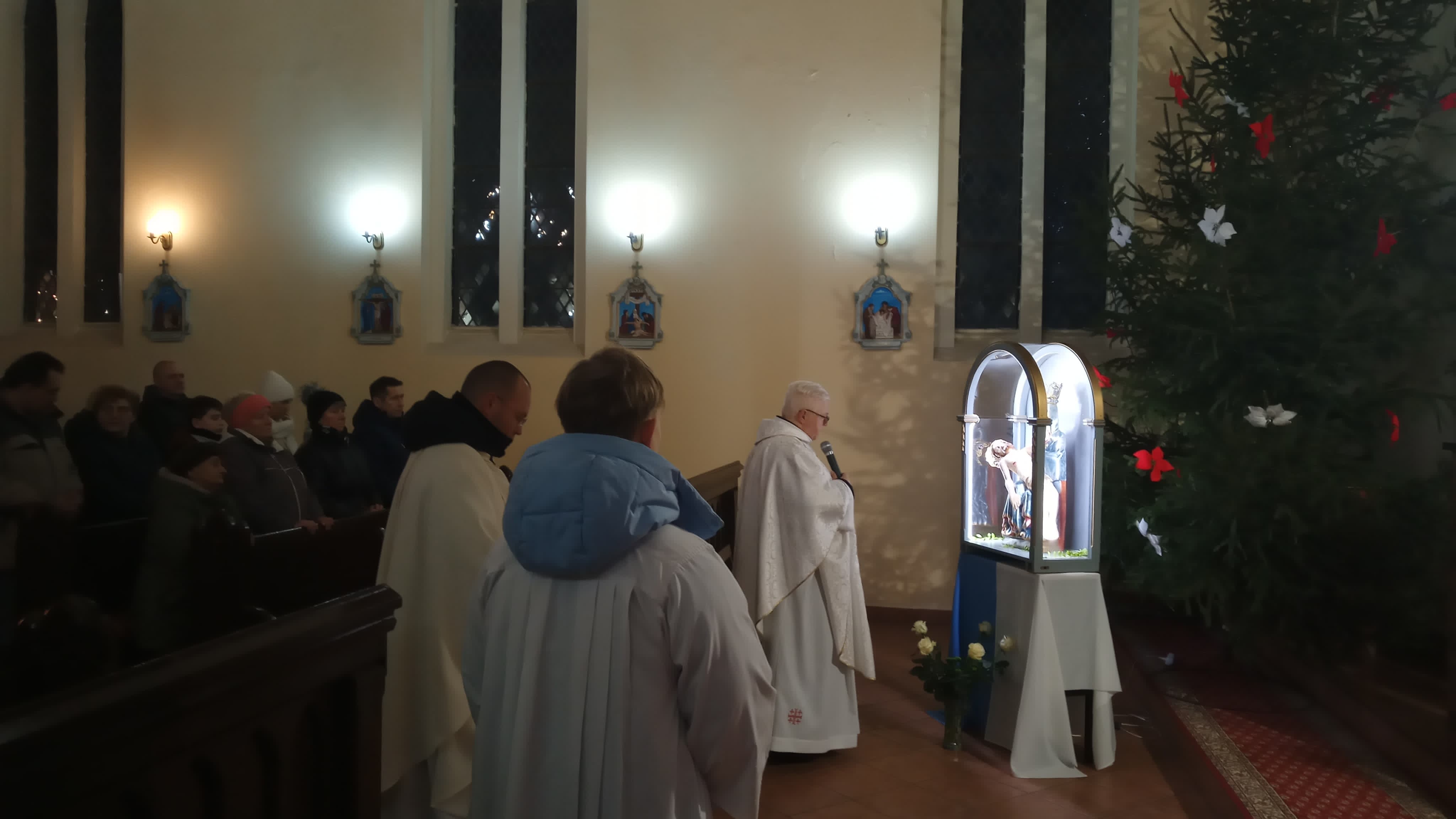W dniach od 20 stycznia do 23 stycznia nasza parafia przeżywała odwiedziny figury Matki Bożej Skrzatuskiej w związku z przygotowaniem do przeżywania jubileuszu 450 - lecia obecności cudownej Piety w sanktuarium skrzatuskim. Nawet zimowa pora nie przeszkodziła wiernym którzy licznie gromadzili się przy Maryi prosząc o wstawiennictwo u Pana Jezusa. Był to niezwykły czas łaski Bożej.